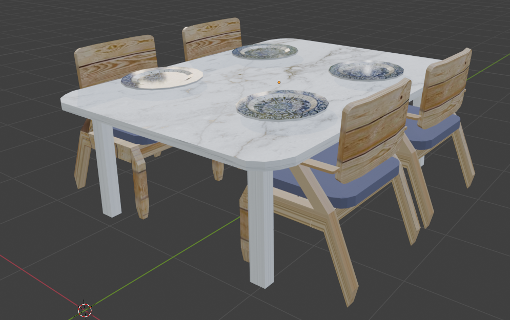 A dining asset made using UV unwrap and all the other necessary tools